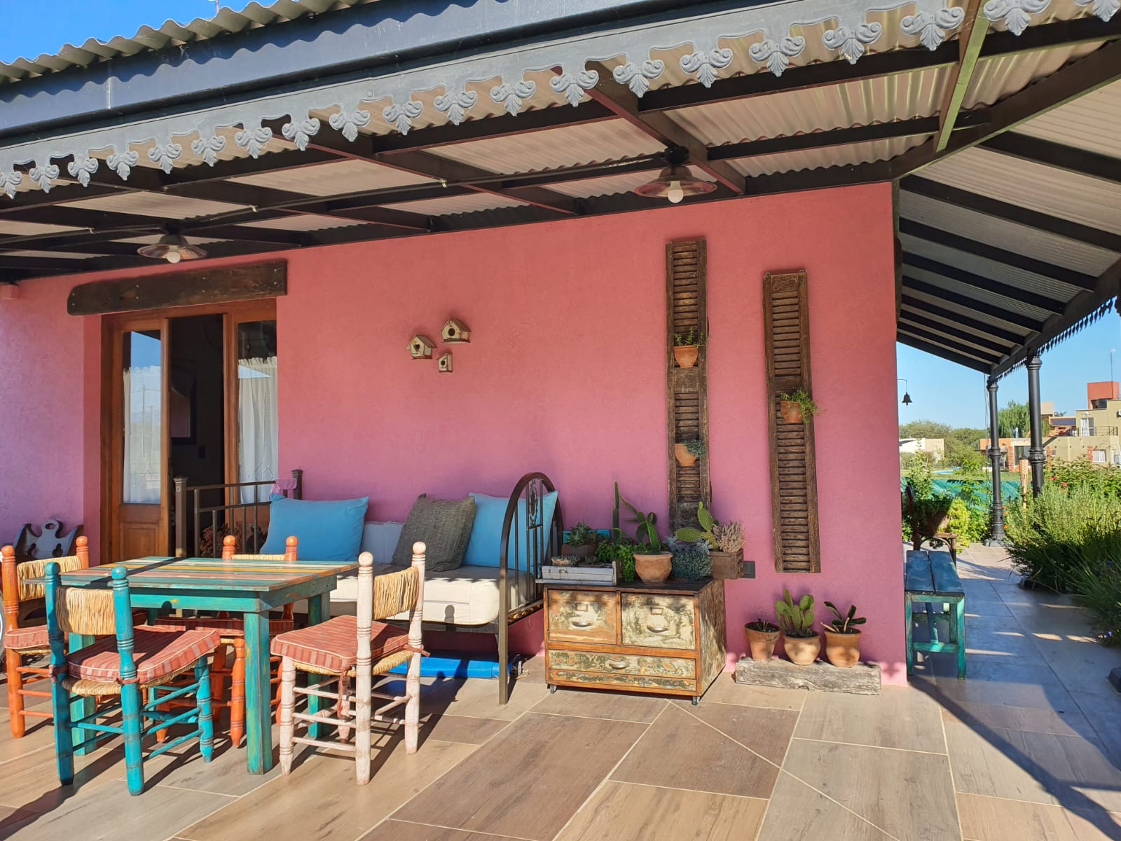 CASA en Villa de Merlo. S.L San Luis. Ubicación: Country Solares del Valle, ubicado sobre la ruta 5, km 7.5, a solo 7 minutos x autopista en línea recta a la rotonda de Merlo. Terreno : 800 mts 2 con posibilidad de anexar 900 mts más. Construido: 76 mts 2 Cubiertos y 100 mts semi cubiertos. Posibilidad de ampliación. 4 años de antigüedad. Orientación norte sur. Construcción de alta calidad. Cimientos anti sísmicos. (1.30 mt). Ladrillo cerámico 18cm. Aberturas de maderas nobles, pinotea y roble con dinteles de durmientes de quebracho. Pisos de porcelanato símil madera. Revestimiento Revear. Estilo campestre vintage. Baño con muebles a medida, con cerámicas únicas y estucado estilo italiano en las paredes al tono. Sanitarios Ferrum. Griferia Robinet. Pintoresca cocina con artefacto Morelli vintage industrial con extractor. Gas envasado. Cómodo Living-comedor, luminoso calefaccionado con a Estufa y Horno a leña Tromen. Habitación amplia (4mts x 5mts) con gran placard de pared a pared. Aire acondicionado frío/calor y Estufa a gas envasado. Cochera semi cubierta. Galería abierta con asador al este, con amplia vista a la sierra. Mesada de quebracho con pileta para lavar. Galería cerrada con paños trasparentes rebatibles con vista a la sierra. Galpón cerrado para guardado en general. Bello jardín de ornamentales, huerta, árboles frutales y plantación de Blackberrys en plena producción, (Fruta Fina). Todo el parque está equipado con riego x goteo. Predio cercado con tejido romboidal, árboles y cerco vivo, pirca al frente con durmientes de quebracho y hermoso portón único de madera y hierro corredizo. Escrituración inmediata. Impuestos al día. Country Solares del Valle es una hermosa urbanización en crecimiento con vecinos viviendo en forma permanente. Servicios permanente de abastecimiento de agua de perforación propia, luz, gas envasado, wi fi. Expensas aprox $ 20000 ( incluyen mantenimiento de calles, alumbrado público, agua, servicio de seguridad 24hs, cancha de fútbol y club house)